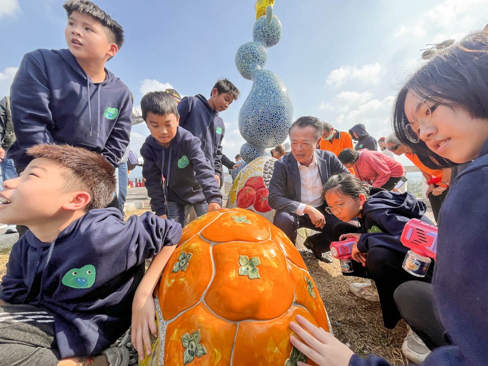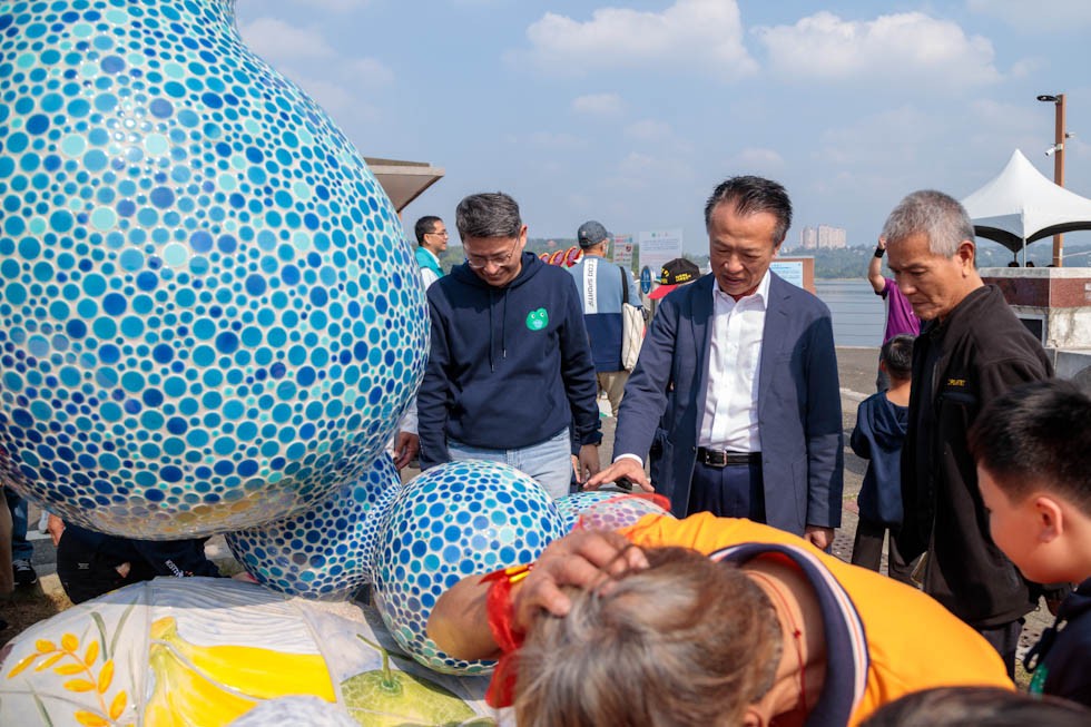 翁章梁說,在公共空間放置大家的作品非常不簡單,尤其是社區長輩與學生親手做出來的更難得,大家都有親手製作某一部分再拼湊而成,遊客到仁義潭湖畔就能欣賞有感情、有溫度的公共藝術,很開心看到青銀世代在作品裡尋找自己的痕跡。